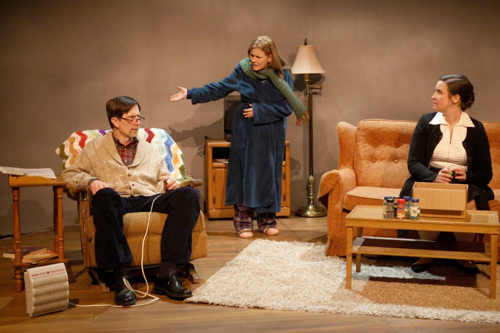 Her husband, Alec, in a skillfully nuanced portrait by David Wassilak, is a taciturn sort used to blocking out the cacophony of three women in the house. Of course he cares for them, but like most dads, he has his routines. He really doesn’t want to talk about anything beyond the immediate issues, like the chilly house because of a wonky boiler.