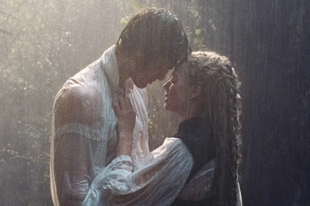 The tone is troubling too – Elordi is never savage or a brute to Robbie, and she’s not nearly as wild as the book depicts Cathy. Their relationship, so-called “forbidden,” was thwarted because of societal constraints in the Victorian Era.