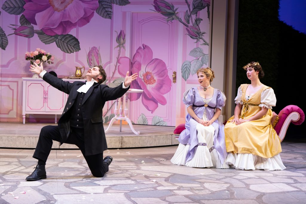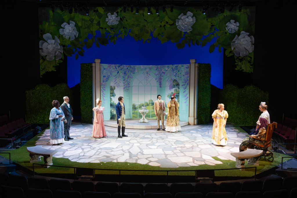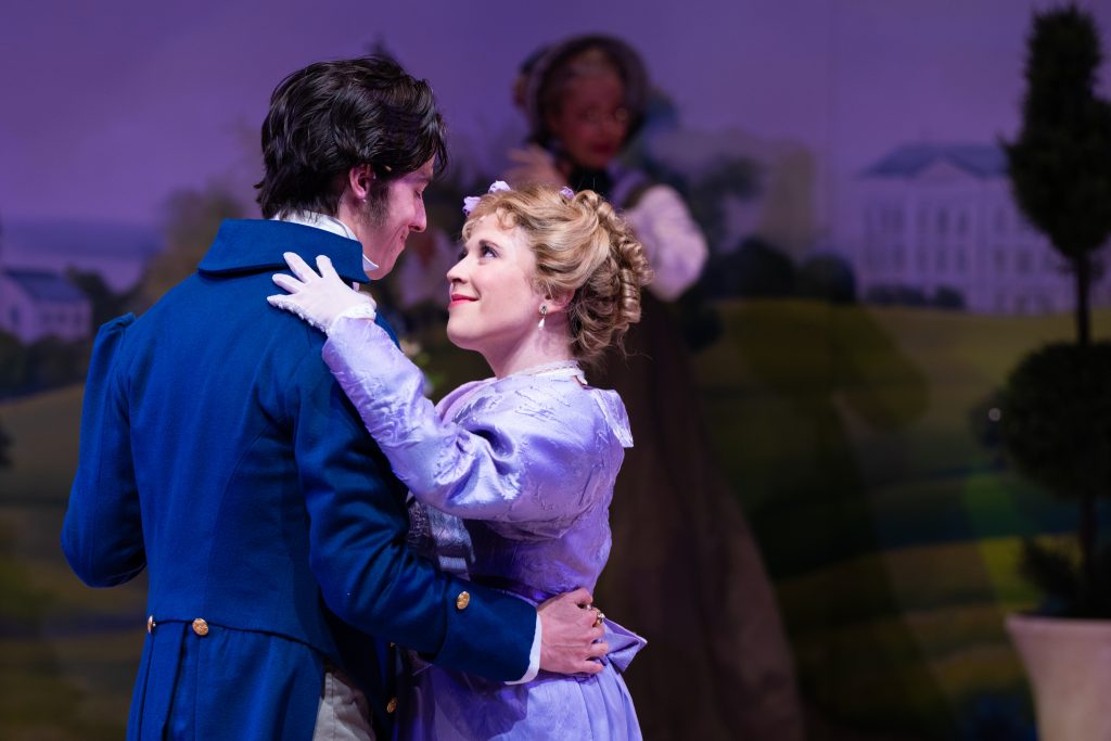 Janeites looking for strict historical accuracy may be surprised but could be won over by the production’s effervescence. Margery and Peter Spack’s captivating set design, with a focus on florals, is enhanced by Jason Lynch’s lighting design.