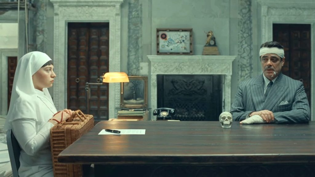 Korda reaches out to his estranged daughter, Liesl (Mia Threapleton), a devoted novitiate nun whom he hasn’t seen or spoken to in six years. He plans to name her heir to his fortune and business investments (“on a trial basis”), and he wants to finalize his elaborate development within the fictional Middle-Eastern-inspired country of Phoenicia: the titular Phoenician Scheme.