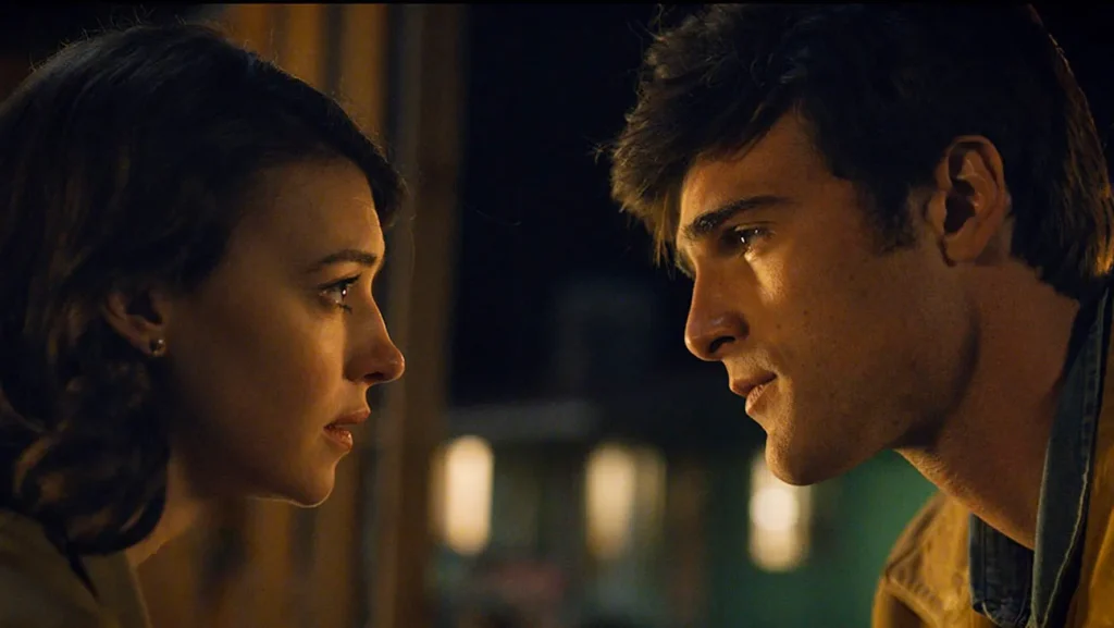 Muriel (Edgar-Jones) chafes at convention – doomed to be a typical wife in post-war America although she reluctantly attempts to fit in — while brothers Lee (Poulter) and Julius (Elordi) are Korean War veterans. The film starts in 1952 but it’s not clear how much time passes.